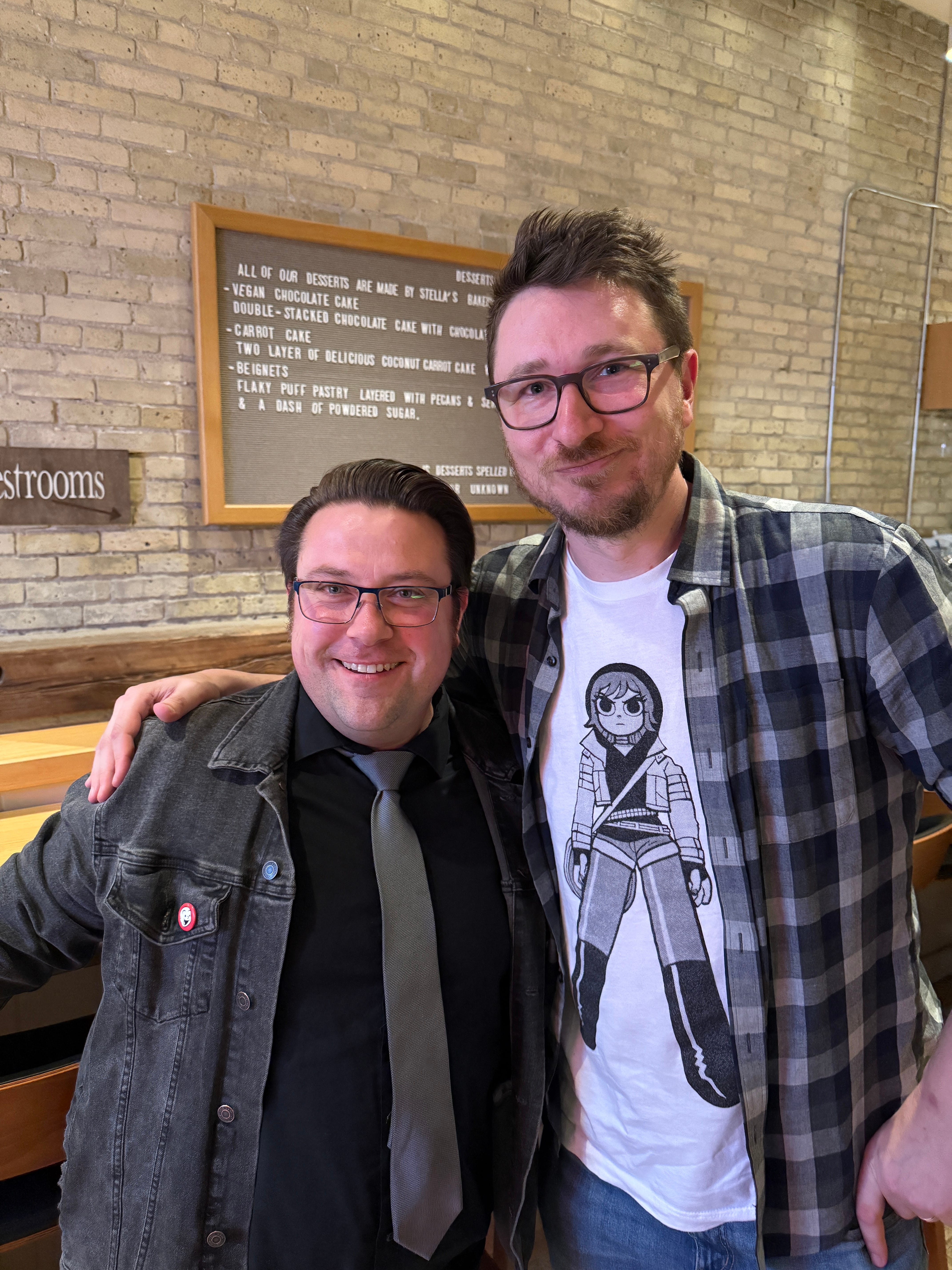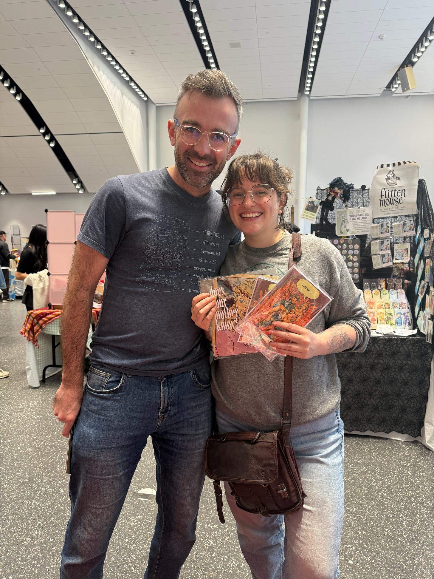 One of the highlights was reconnecting with Nicholas Friesen (aka Nicholastronaut)—yet another good person of comics™ I met through other good persons of comics™, Chris Sanagan and Jason Lapidus (the Group of 7 creators I had the dumb, wonderful luck of being placed next to in the Canadian pavilion in Angoulême). Nick took me, a creature of habit who usually sticks to chain restaurants, to a truly Winnipeg dining experience at a place called Kevin’s. Comfort food, live band, and at one point, both of us stopped mid-conversation to ask, “Is that the theme from Jurassic Park?” It was. And it was glorious. Nothing says “authentic Winnipeg” like slurping Mulligatawny while a band plays John Williams.
